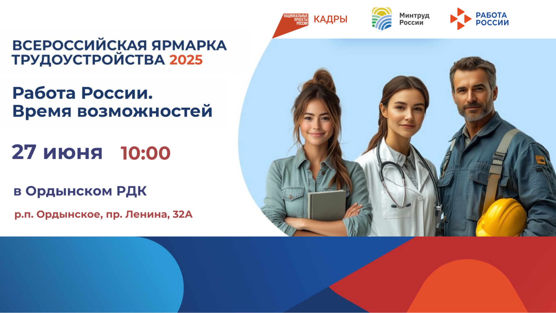 "Работа России. Время возможностей" 20.06.2025 13:30 изменено Всероссийская ярмарка трудоустройства 2025Работа России. Время возможностей"Объявление для граждан, ищущих работу